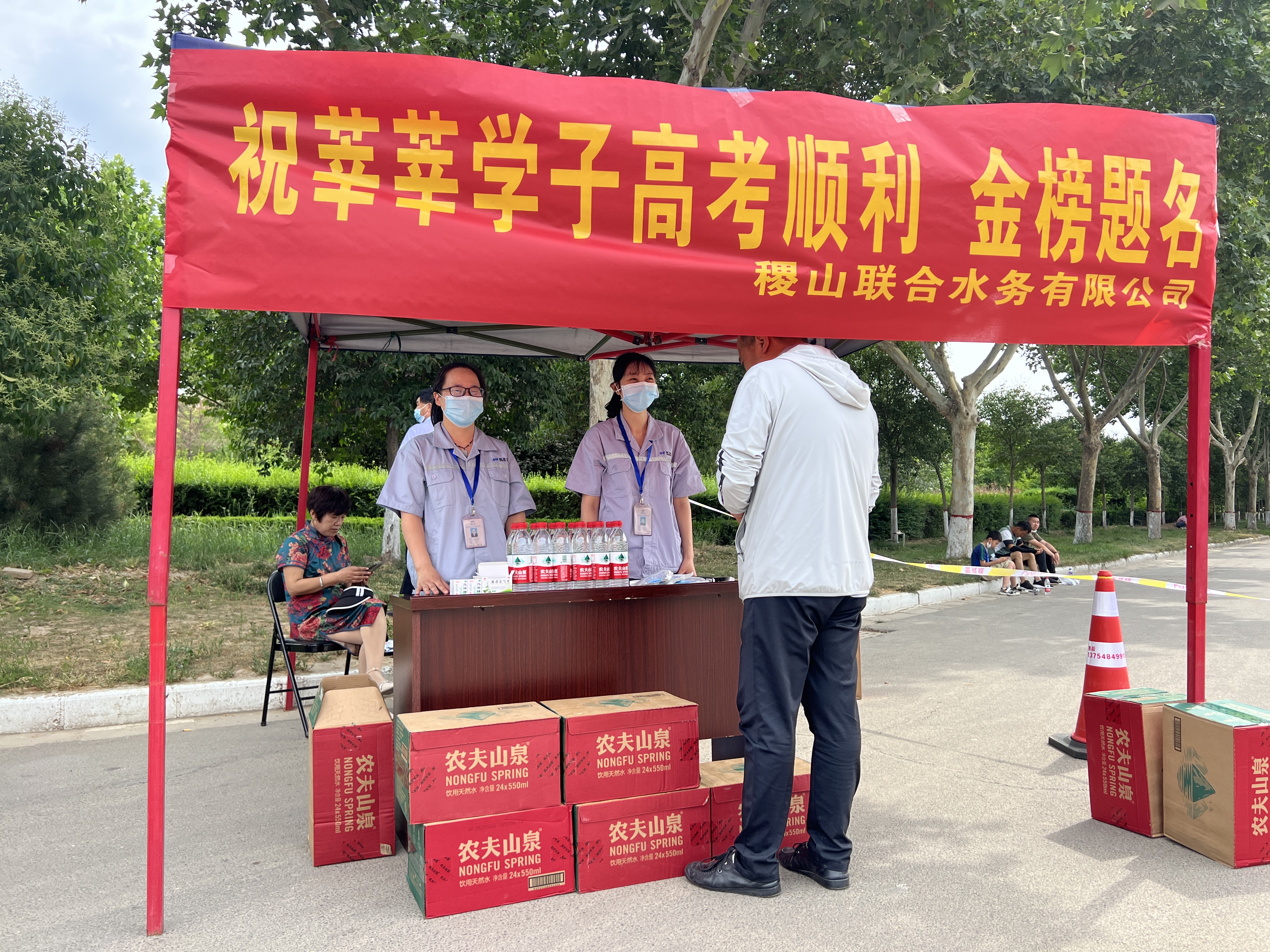 高考期間,稷山聯(lián)合水務(wù)分別在稷山中學(xué)、稷王中學(xué)2個(gè)考區(qū)門口設(shè)立高考愛心服務(wù)站,撐起遮陽(yáng)傘,為在考場(chǎng)外急切等候的考生家長(zhǎng)提供臨時(shí)休息場(chǎng)所,緩解家長(zhǎng)們焦灼等待的心情;并為考生和家長(zhǎng)免費(fèi)提供礦泉水、口罩、防暑藥品等,為赴考的學(xué)子及家長(zhǎng)們送上一份清涼與關(guān)愛。