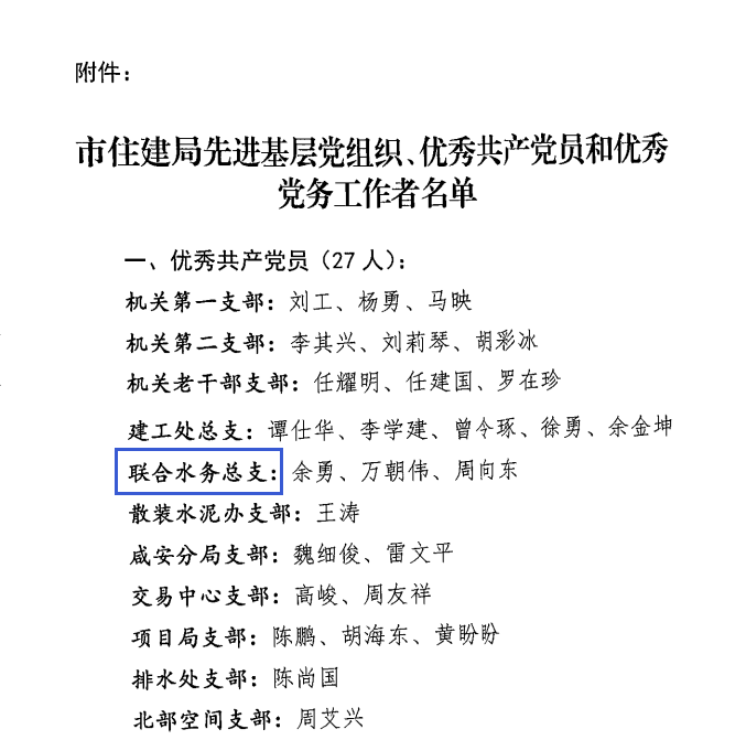 會上,孫金蘭宣讀了市住建局黨組《關于表彰先進基層黨組織、優秀共產黨員、優秀黨務工作者的決定》,咸寧聯合水務余勇、萬朝偉、周向東三名黨員榮獲2022年市住建系統“優秀共產黨員”的殊榮,再傳喜訊。