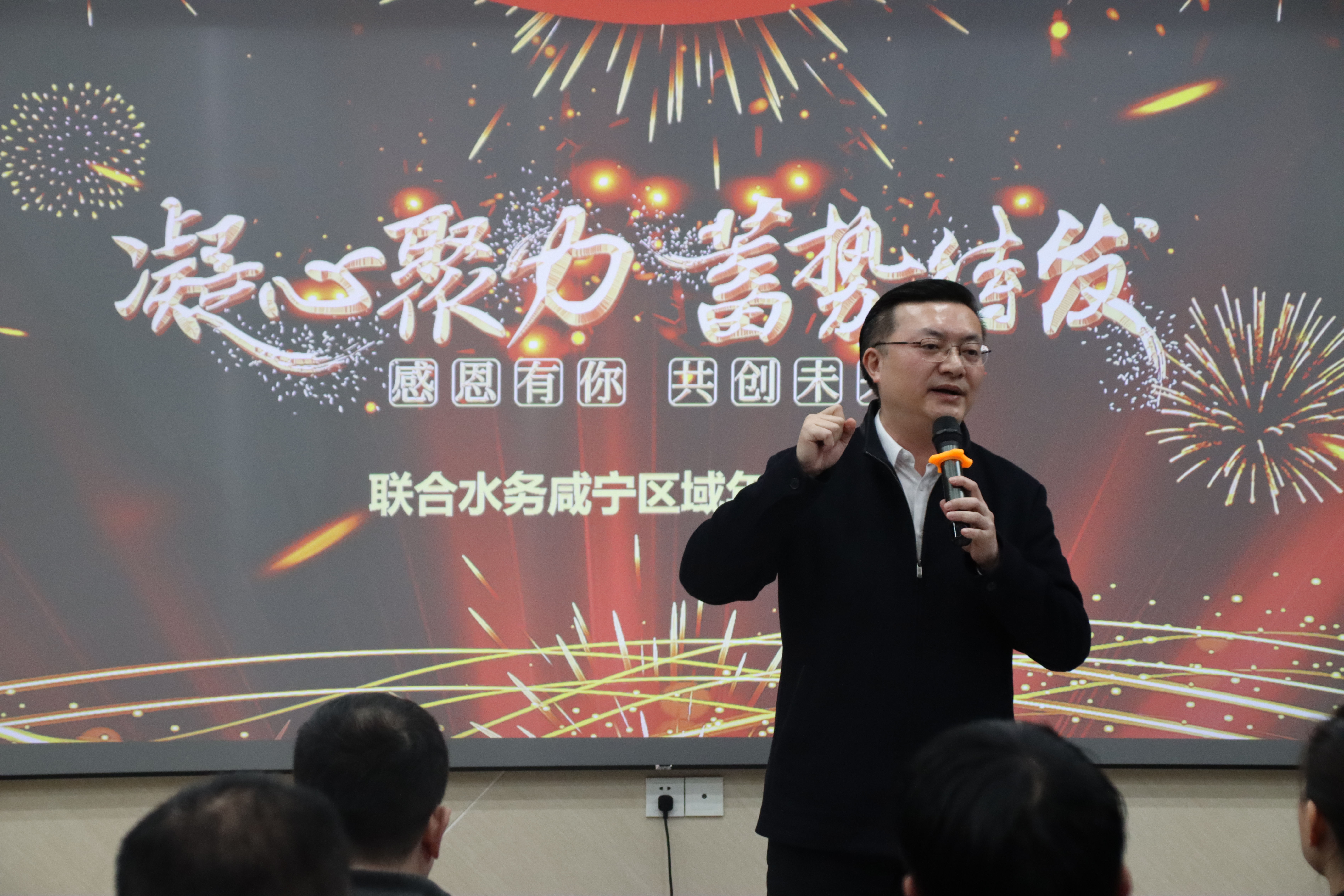圖:劉總作總結講話 好風憑借力,揚帆正當時。新的一年,聯合水務咸寧區域全體員工將鉚足干勁,憑借“不畏浮云遮望眼,風雨無阻向前行”的清醒、“咬定青山不放松,立根原在破巖中”的堅定、“群眾利益無小事,一枝一葉總關情”的責任,凝心聚力、蓄勢待發、再展宏圖。