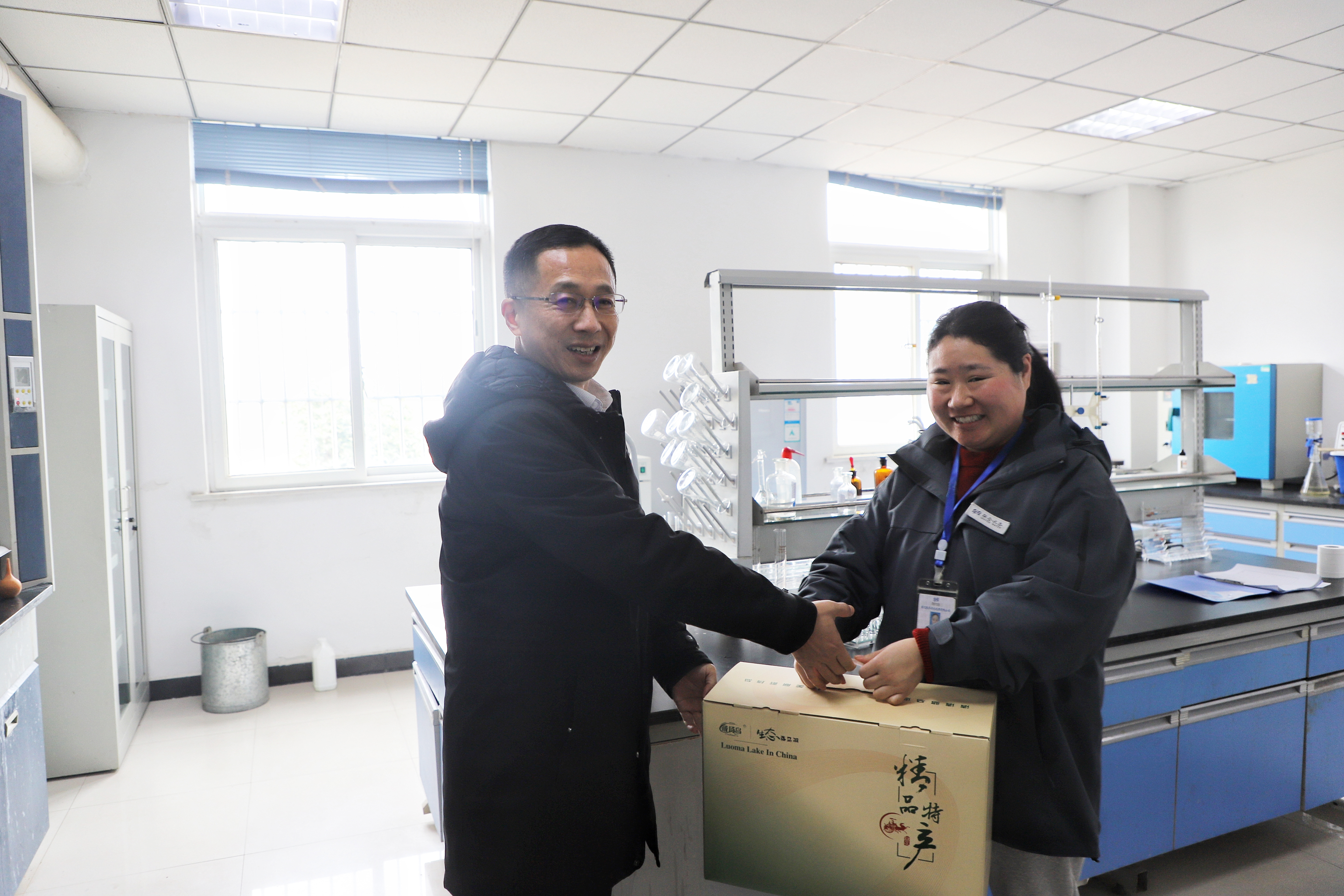 圖:慰問一線員工 新春慰問,情暖一線 員工是聯(lián)合水務(wù)宿遷供水公司的發(fā)展之本,公司始終把關(guān)心關(guān)懷一線員工做為應(yīng)盡之責(zé),春節(jié)進行一線值班人員慰問活動已經(jīng)成為公司傳統(tǒng)。隆冬透寒意,關(guān)懷暖人心,一聲聲誠摯的祝福既溫暖了值班人的心,也溫暖了新一年的供水之路。 大年初一,正是萬家團圓時,江蘇聯(lián)合水務(wù)科技股份有限公司宿遷供水公司總經(jīng)理曾真、副總經(jīng)理趙軍一行先后前往一水廠、客服中心、調(diào)度中心、耿車污水廠看望和慰問節(jié)日期間仍堅守崗位的一線員工,詳細了解員工們值班值守情況,并為大家送去暖心慰問品與新春祝福,感謝他們在春節(jié)期間為保障供水做出的貢獻,并勉勵大家繼續(xù)盡心盡責(zé)值好班、守好崗,把好春節(jié)供水安全關(guān)。 時序更替,華章日新,癸卯兔年已經(jīng)到來!在這辭舊迎新、萬家團圓的美好時刻,江蘇聯(lián)合水務(wù)科技股份有限公司宿遷供水公司恭祝全市人民闔家歡樂,幸福安康! |