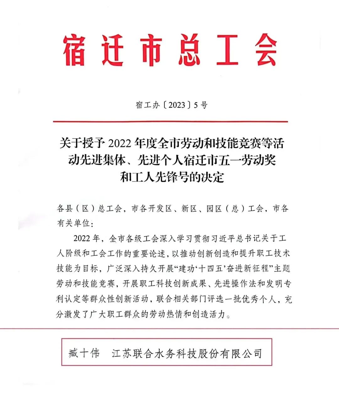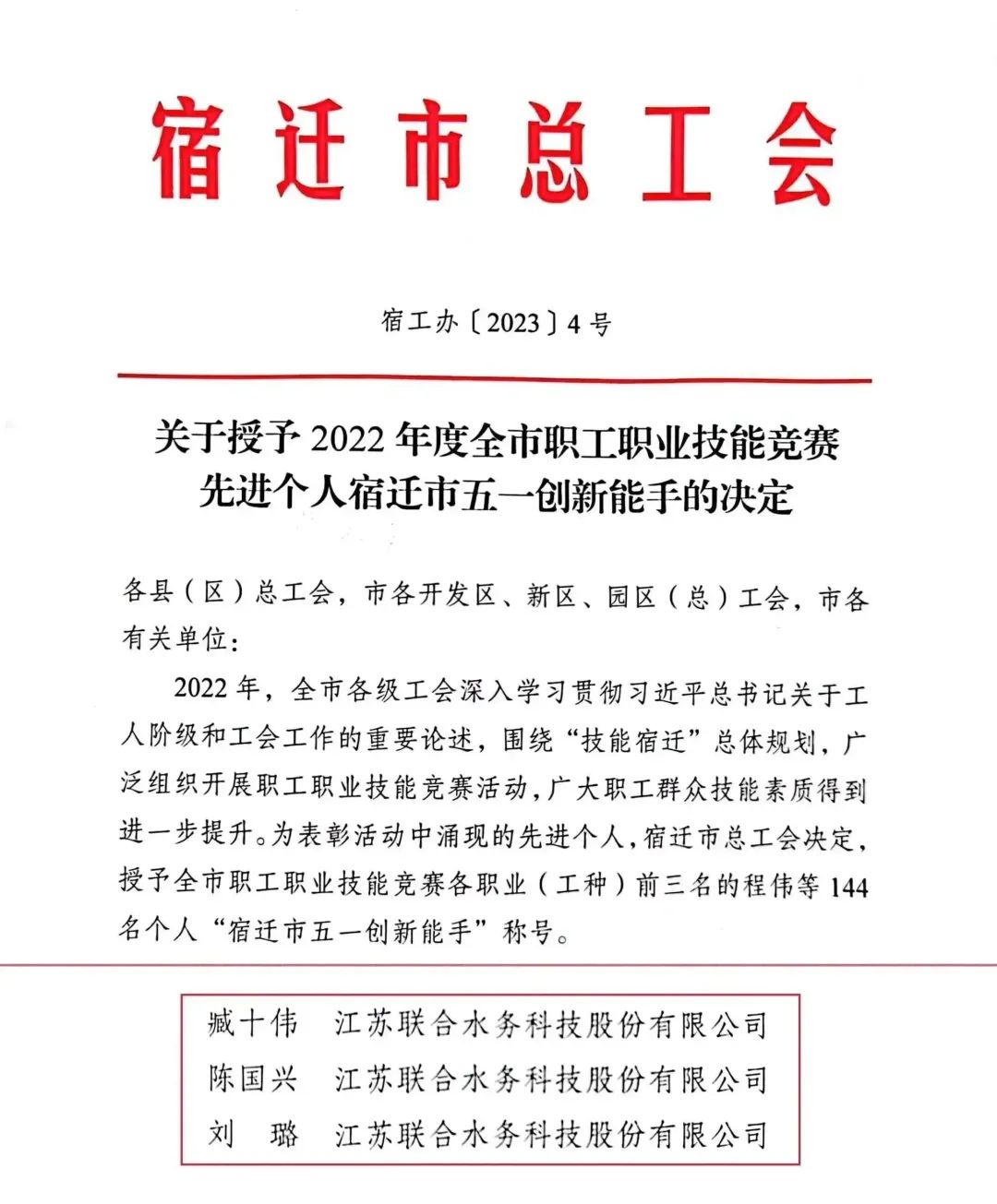 | 喜報(bào)!這些聯(lián)合水務(wù)人榮獲宿遷市“五一勞動(dòng)獎(jiǎng)?wù)隆焙汀拔逡粍?chuàng)新能手”榮譽(yù)稱號(hào)! | ||