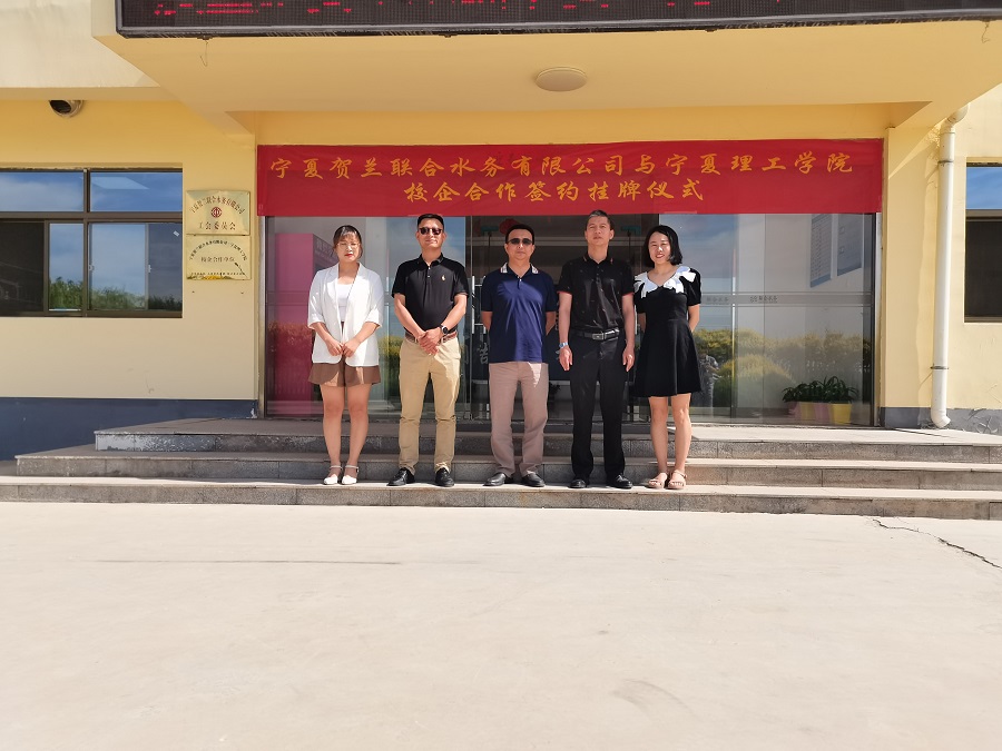 2023年6月,寧夏賀蘭聯合水務有限公司與寧夏理工學院在賀蘭聯合水務綜合辦公樓舉行了校企合作簽約儀式。出席此次簽約儀式的有寧夏賀蘭聯合水務總經理黃麟、經營副總俞文澤、人事經理?、行政經理吳玲,理工學院建筑與環境學院院長劉振華、副院長雷紅霞等。