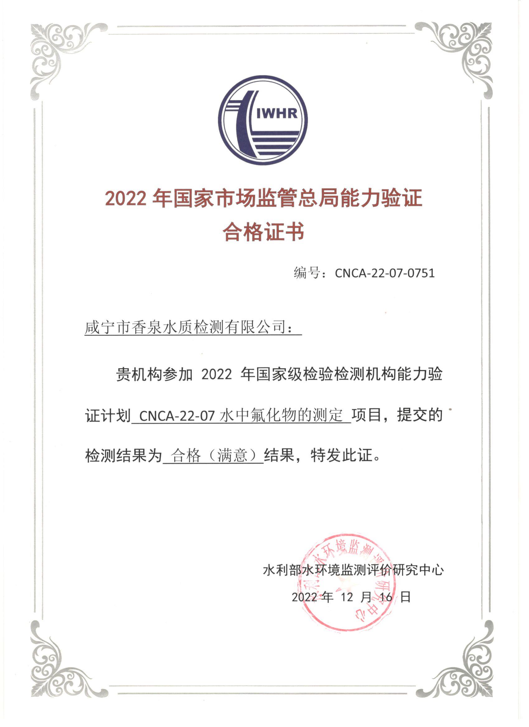 近日,聯合水務咸寧市香泉水質檢測有限公司暨湖北省城市供水水質監測網咸寧監測站傳來佳績,其參與的國家住建部城市供水水質監測中心于2022年11月組織開展的《第16次全國城鎮供排水行業檢驗檢測機構質量控制考核》活動,全部取得“合格”結果。