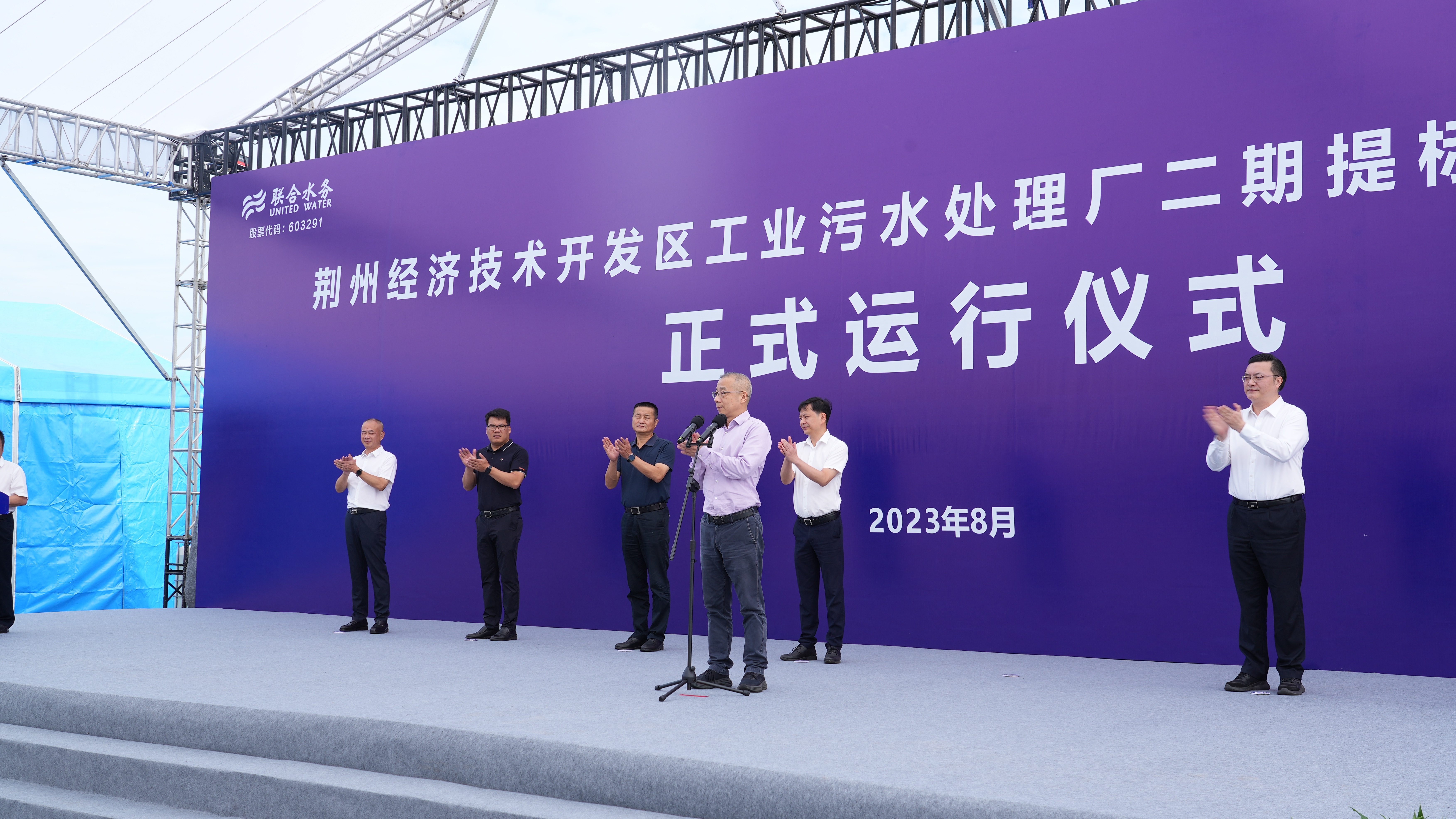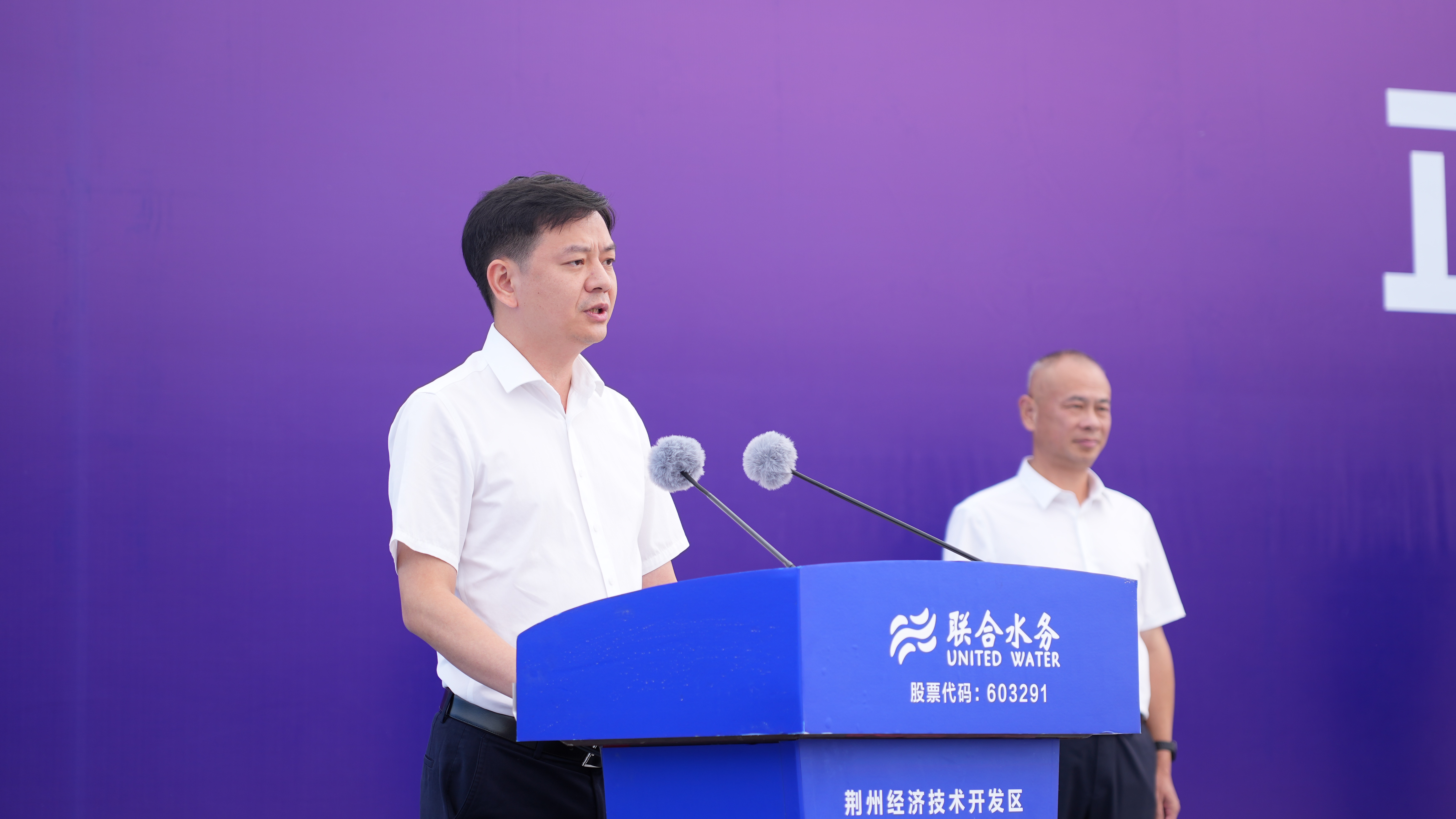 隨后,聯(lián)合水務(wù)常務(wù)副總裁劉猛代表聯(lián)合水務(wù)集團(tuán),對前來參加運行儀式的各位領(lǐng)導(dǎo)和來賓表示熱烈的歡迎和衷心的感謝。劉猛表示,此次項目的正式運行,將為荊州經(jīng)開區(qū)及沙市區(qū)工業(yè)企業(yè)提供更加穩(wěn)定、更加優(yōu)質(zhì)的工業(yè)污水集中處理服務(wù)。從今天起,聯(lián)合水務(wù)將繼續(xù)秉持“為保護(hù)社會環(huán)境提供潔凈的水處理服務(wù)”的初心使命,不斷提升管理水平和服務(wù)質(zhì)量,為荊州經(jīng)濟(jì)社會發(fā)展做出更大貢獻(xiàn)。