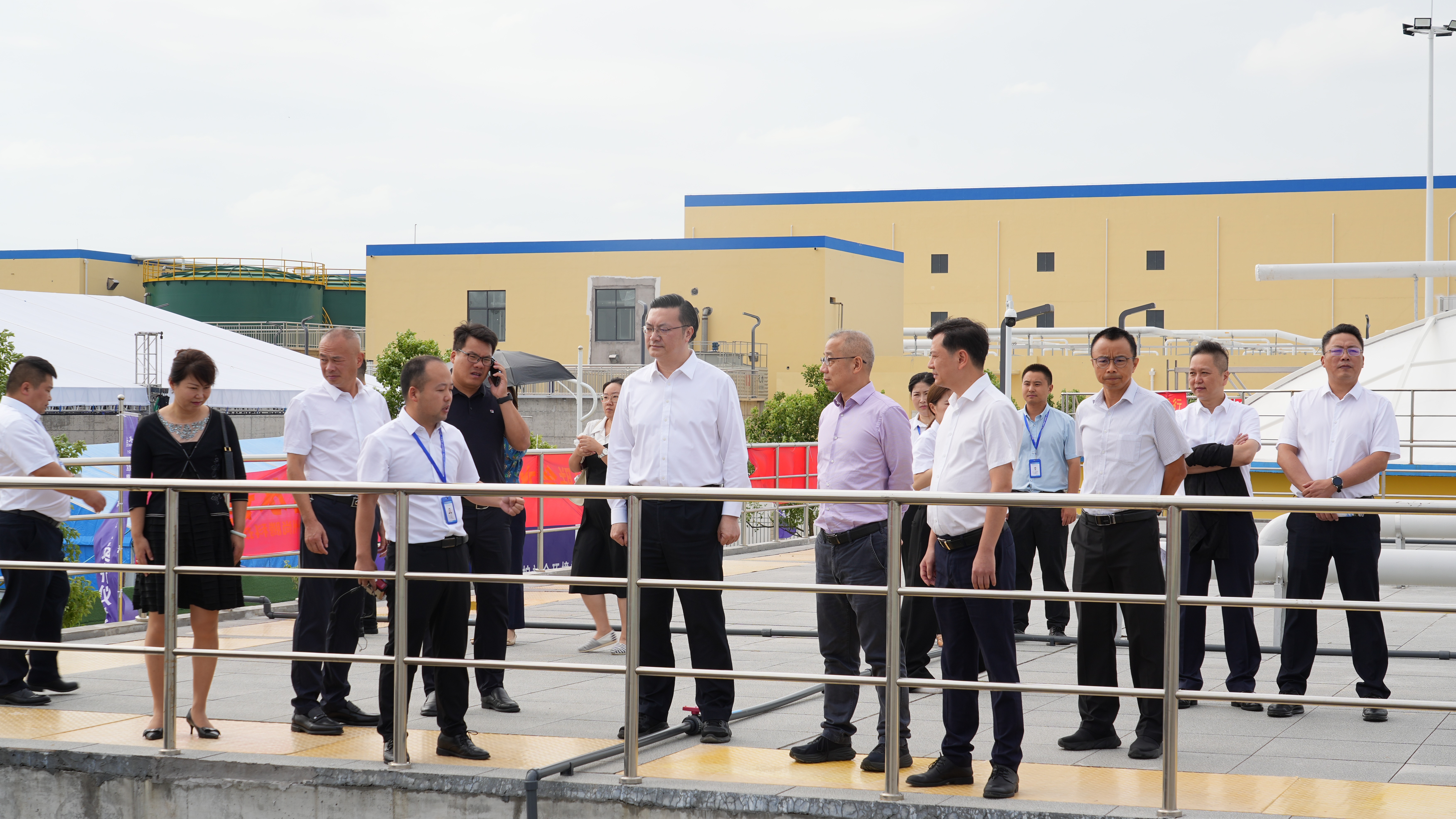 運行儀式結(jié)束后,陳明宇、俞偉景一行領(lǐng)導(dǎo)在荊州申聯(lián)公司生產(chǎn)技術(shù)總監(jiān)廖智勇的帶領(lǐng)下依次參觀了工程新建的初沉池、A2/O池、污泥脫水間以及改造完成后煥然一新的化驗室、中控室。
