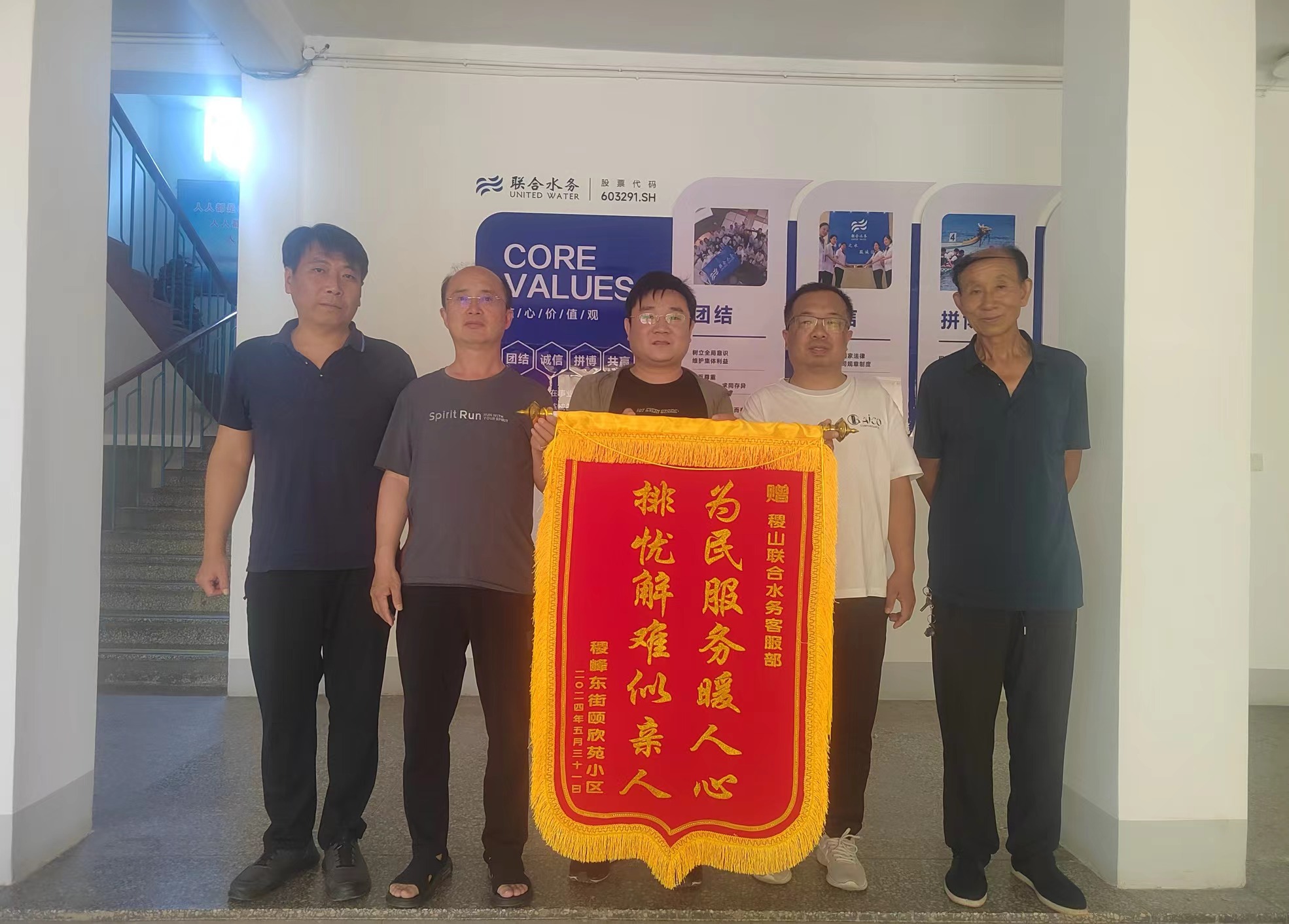 近日,稷山縣頤欣苑小區用戶來到稷山聯合水務有限公司客服部,將一面印有“為民服務暖人心 排憂解難似親人”的錦旗交到客服部經理孫紅梅的手中,并對抄表員張維杰在對小區的供水服務工作中想用戶所想、急用戶所急,為小區用戶排憂解難和認真負責的工作態度表示感謝。