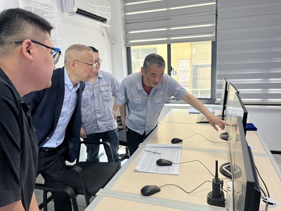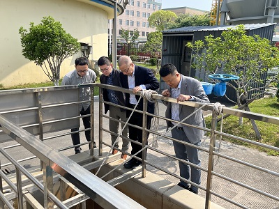 上午俞總一行蒞臨桐鄉公司,實地視察桐鄉公司廠區各工藝單元的生產運行情況。先查看了桐鄉公司工業污水處理建設項目的改造地、高總現場介紹了該項目的工程概況、前期進展情況、改造方案及后續重點工作等,葉總進行了細節補充。隨后又視察了出水口、生物指示池、CASS池、二沉池等區域。廠區視察結束后,俞總一行來到辦公樓化驗室和中控室,了解活性污泥鏡檢的情況、水質情況和在線實時監控情況。