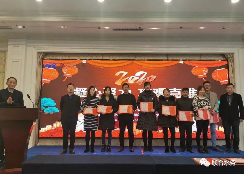 圖7:先進(jìn)部門合影留念 最后,劉總做出了重要講話。劉總對咸寧項目公司十年以來取得的成績表示肯定和祝賀,并對兩個項目公司的年終總結(jié)進(jìn)行了點(diǎn)評,肯定了公司領(lǐng)導(dǎo)人在匯報中發(fā)現(xiàn)問題、提出問題、分析問題的態(tài)度,劉總要求在2020年,公司要將產(chǎn)銷差作為重點(diǎn)工作抓,同時也要緊跟咸寧市的重點(diǎn)項目和發(fā)展方向,作為供水民生企業(yè),要主動出擊、主動作為、主動服務(wù),為推動咸寧城市的發(fā)展盡職盡責(zé)。公司各部門和員工要齊心協(xié)力,挑戰(zhàn)年度目標(biāo)和任務(wù),敢于突破固有思維和框架,提高執(zhí)行力,各項工作都要未雨綢繆,實現(xiàn)跨越式發(fā)展!