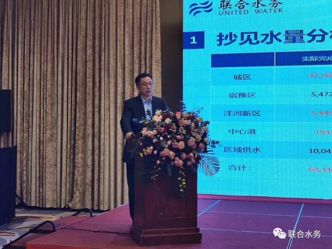 會議最后,聯合水務集團高級副總裁劉猛先生做重要講話。劉總裁一句 “宿遷的兄弟姐妹們,大家好”充分彰顯了聯合水務大家庭的溫暖。劉總裁用“四喜盈門”形容宿遷公司2019年所取得的優異成績。一喜是宿遷公司在巨大用水需求壓力下能夠保障全年安全供水,克服萬難,回收了高額的應收賬款;二喜是工程公司營收大大超額完成、團隊建設卓有成效、為集團內部工程無私奉獻的精神值得學習;三喜是耿車污水廠水量由量變到質變,有了質的飛躍,公司建設面貌突飛猛進;四喜是宿遷項目建設團隊為宿遷的供水事業發展所必需的供水基礎設施建設做出了優異的成績,可喜可賀。