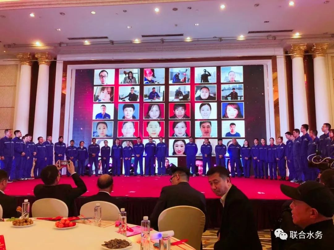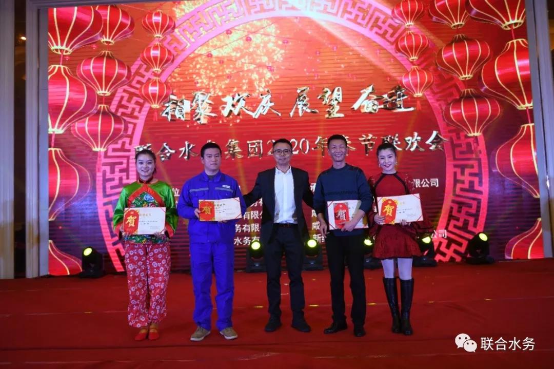 聯合水務集團董事長兼總裁俞偉景先生致新春賀辭 俞總的致辭情真意切,振奮人心,另一個提振士氣的時刻又將到來。2019年,全集團共產生了37位先進員工,他們在各自的崗位上做出了突出的成績,為彰顯榜樣的力量、鼓舞干勁,聯歡會對先進員工們進行了現場表彰。他們邁著堅定的步伐、帶著自信的微笑,走上臺上,揮手示意,特邀嘉賓長江國控金融控股有限公司董事局主席蘇云先生等、集團董事長兼總裁俞偉景先生等總部各位領導、各項目公司總經理上臺為他們綬紅綢帶、合影留念,并一起給聯合水務全體家人拜年,送出了新春祝福。