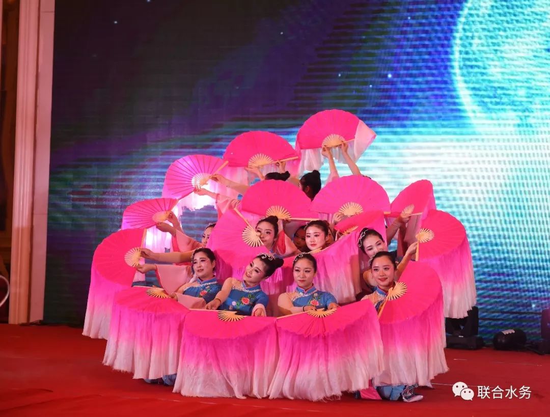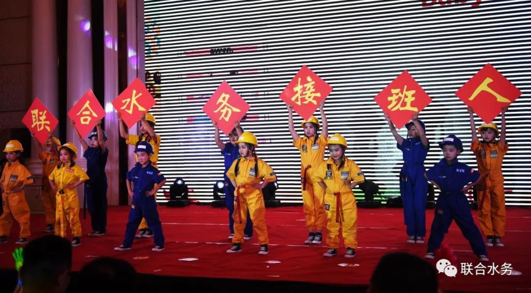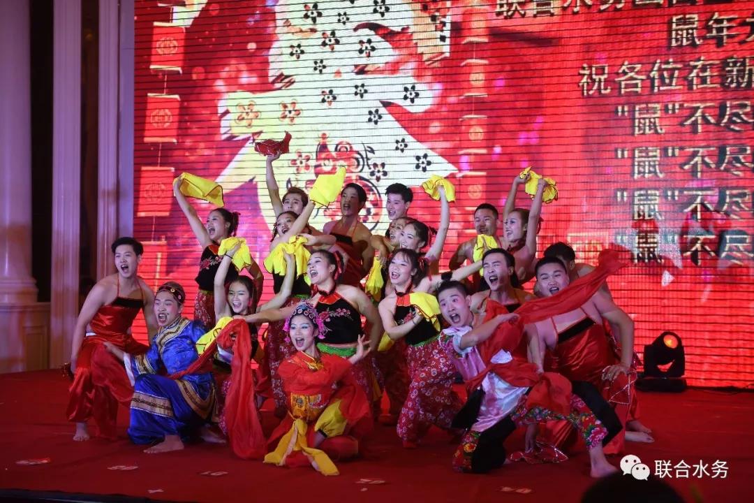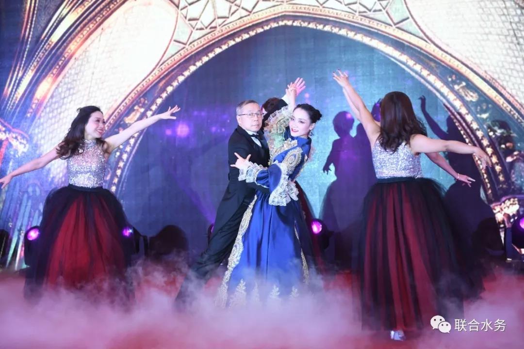 全集團2019年度37位先進員工上臺領獎 晚會的喜慶氣氛越來越濃烈,聯合水務員工們自編自演了五彩繽紛的文藝節目,現場仿佛一片歡樂的海洋。“枝間新綠一重重,小蕾深藏數點紅”,微醺拂面人欲醉,點點芳菲春漸濃。由宿遷公司帶來的大型舞蹈《海棠春色》,好似帶領大家游走在春的繽紛中,優美動人的舞蹈構筑出一幅花光明麗,遠山近水、鳥語蟬鳴的雅致唯美春色畫卷。山西區域表演的山西民間舞蹈《醋之韻》,將勞動人民在山西地肥水美的好風光下,釀醋、戀醋的勞動場景演繹的淋漓盡致,讓人迫不及待一品醋之韻味。明日燦爛輝煌依舊守望,今日艱巨的責任不敢怠慢。伴隨著一陣神秘的音樂,一顆美麗的星球出現在觀眾眼前,音樂漸漸沉重,這顆美麗的星球即將滿目瘡痍,就在所有人都陷入哀痛和沉思之時,畫風突變,藍天白云,河流清澈,鳥飛魚躍,臺上演員的舞蹈也隨之歡快起來,這是由隨州公司表演的《碧水藍天》,展示了聯合水務千方百計惜水、愛水、護水的責任擔當。歌聲裊裊辭舊歲,舞姿翩翩賀新年。瑞昌公司的節目《祥瑞昌盛》通過翻飛的彩扇,跳動的舞步,舞出吉祥昌盛的日子;歡快的節奏,活潑的舞姿,靈動的身軀,山西區域帶來的《歡歡喜喜過大年》將現場氣氛再掀高潮;而三門峽公司帶來的舞蹈《紙扇書生》,將晚會氣氛帶入只屬于中國人的風趣儒雅,熱情洋溢中;一曲耳熟能詳的《草原的月亮》頓時開啟了北國風光無限好的境界,悠揚的歌聲,婀娜的舞蹈,仿佛帶領大家進入到了最美的夢鄉;若說曼妙舞姿已讓全場觀眾沸騰,那由桐鄉公司表演的相聲《長壽論》,更是讓大家捧腹大笑。 萬里之船,成于羅盤。聯合水務集團的乘風破浪、奮勇直前,正是因為集團領導和員工的同心同德、同甘共苦。由集團領導班子帶來的歌舞串燒《舞林大會》點燃全場,平時工作中威風凜凜的領導班子,突然化身成為優雅紳士的舞者,風度翩翩;引吭高歌的歌者,熱情高昂,F場觀眾手中揮舞的熒光棒與動人的華爾茲融合為一,如夢如幻,韻味十足,給觀眾帶來別翻視覺享受和聽覺享受,贏得現場觀眾的陣陣掌聲和喝彩。