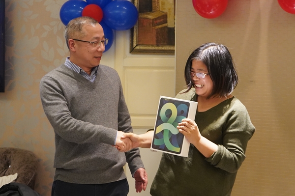 總裁俞偉景發(fā)表活動(dòng)致辭 “鴻運(yùn)當(dāng)頭”的驚喜抽獎(jiǎng)把整個(gè)活動(dòng)推向高潮。在每一個(gè)大獎(jiǎng)開獎(jiǎng)之前,大家都屏神凝氣,熱血沸騰;開獎(jiǎng)后,中獎(jiǎng)的同事為鴻運(yùn)歡呼雀躍,其他同事也熱烈鼓掌祝賀,為活動(dòng)增添了無數(shù)歡聲笑語。在活動(dòng)即將落幕的時(shí)候,俞總帶領(lǐng)大家共同唱響生日歌,為近期慶生的同事舉辦生日會(huì),并為壽星們送上書籍。生日會(huì)傾注了集團(tuán)對(duì)每一位員工的關(guān)懷與愛護(hù)。現(xiàn)場活躍的氣氛極大的調(diào)動(dòng)了每一位員工的企業(yè)融入感,在寒冬里溫暖了大家的心房。