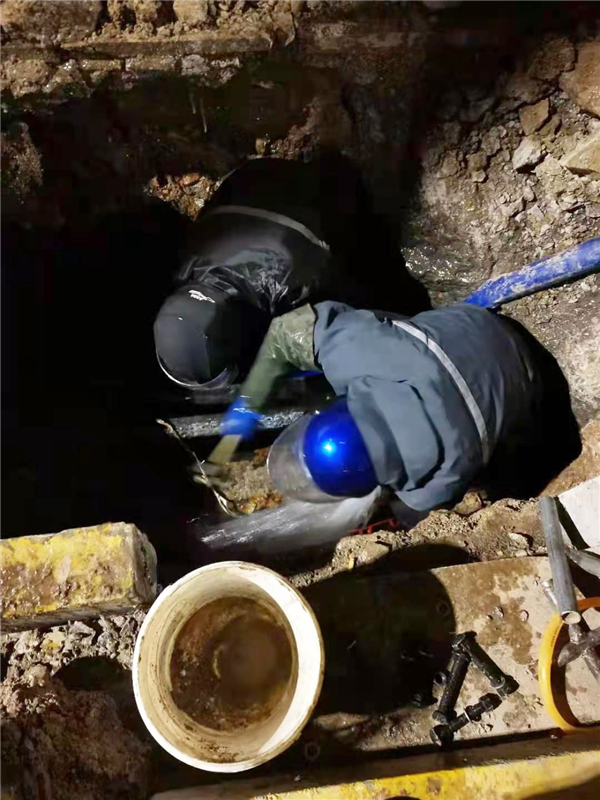 刺骨的寒冷彌漫在這個冬季,滴水成冰。供水形勢異常嚴峻,保障城市供水生命線,是供水人義不容辭的責任。聯合水務供水人逆寒而行,迎難而上,奔赴在大街小巷供水一線,更有一群人沖鋒在前,他(她)們有一個共同的名字叫“共產黨員”。 2021年1月6日晚17:00時,公司管網部接到報修通知,主城區幸福路與馬陵路交叉口發現一處爆管,地面積水嚴重,且已有結冰現象,需要迅速處理。黨員先鋒搶修隊維修員韓江此時剛剛從外面維修回來,聽到這個消息,二話不說,立即趕往現場,沒有片刻停歇。因正值下班高峰期,路面車流不斷,不便展開維修工作,但路面積水成冰已嚴重威脅到車輛行人安全。韓江說,搶修保供水是供水人的職責,保護人民群眾人身安全更是我作為一名共產黨員的神圣職責,困難再大我們也必須克服,搶修刻不容緩。他緊急向領導匯報,請求增援。首先開展路面積水積冰清理工作,保障車輛行人安全通過,直到19:00,才正式開展維修工作。此時室外溫度-8℃,風漸大。開槽確定漏點,爆管區域硬化路面厚度達1.2米,人工開槽難度太大,調來挖掘機輔助工作,也并不順利,水管上部有兩條不明深度的電纜交叉通過。時間到了22:30分,終于開挖完畢,兩條50電纜保護完好,但是給水管自身狀況卻不容樂觀:原外徑82水泥管與73制式鑄鐵管難以實現無縫連接,現場人員試了多種辦法,均達不到預期效果。 凌晨1:30,室外溫度低至-11℃,呼出的水汽在眉毛上凝結成霜,管道老化、閥門,韓江帶領維修人員依舊在滿是水的泥坑里里摸爬滾打。這樣下去不行,韓江同志冥思苦想更好的對策,在部門韓經理指導下,他確定了先以橡膠墊加厚鑄鐵管再用哈夫節固定的新方案。半個小時后,固定完畢,試水:無明顯滲水,管道穩定性較好,運行正常,市府東路片區恢復供水,方案有效!凌晨3:00,溫度降至-12℃,每個人都在夜色里情不自禁地打擺子,韓經理安排衣服已濕透的韓江同志先回去休息,可他堅持留下,直至回填工作完成。凌晨5:00,搶修圓滿完成,保障了早高峰百姓的安全用水。作為一名黨員,韓江同志十幾年如一日奮戰在城區管網搶修一線。今年遭遇特大寒潮,在完成自己的維修任務時,他主動放棄休息,幫助別的班組維修。在抗寒保供水的戰場上,他充分發揮了黨員的先鋒模范帶頭作用,有任務時先己后人;休息時,先人后己。
