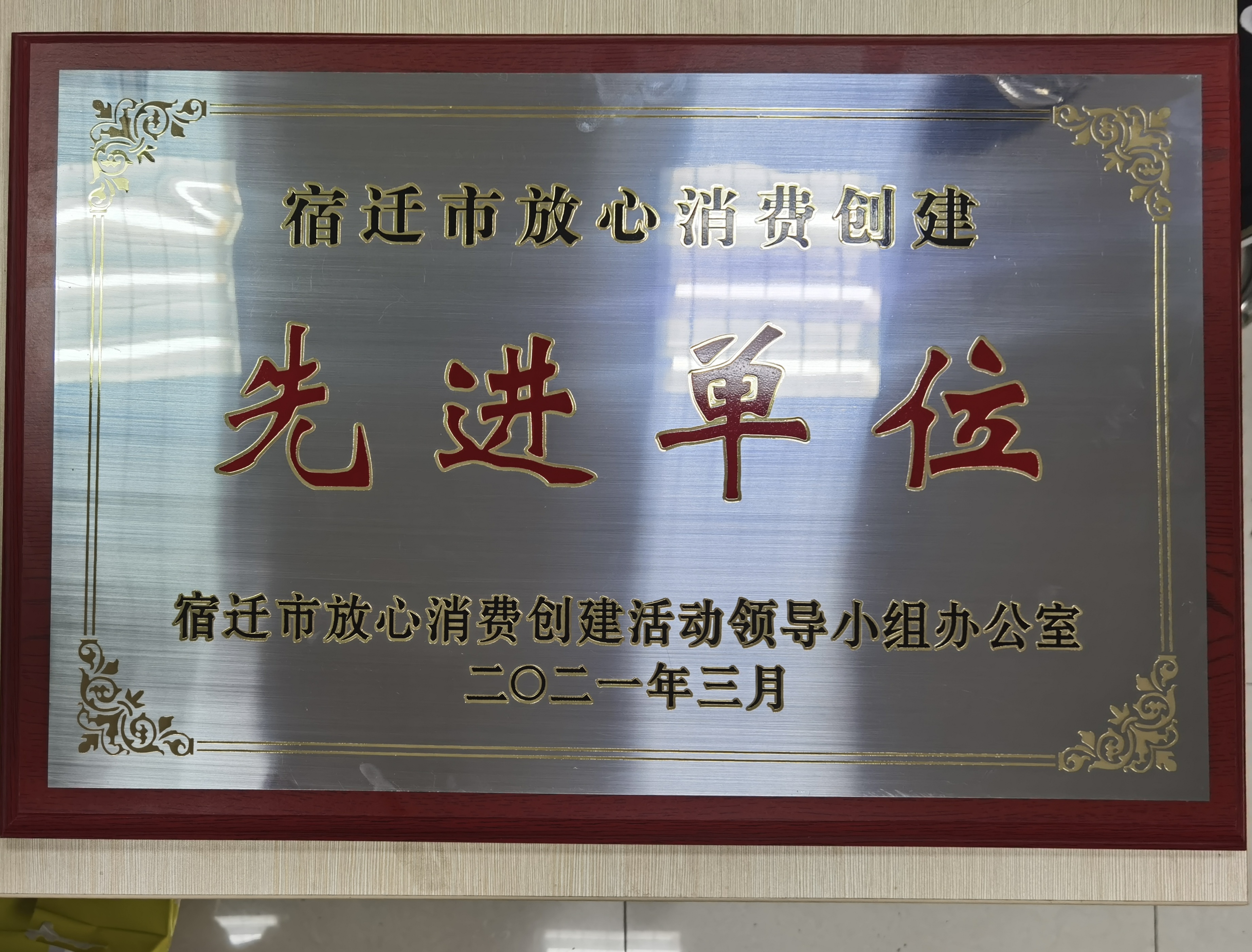 圖:“宿遷市放心消費創建先進單位”獎牌