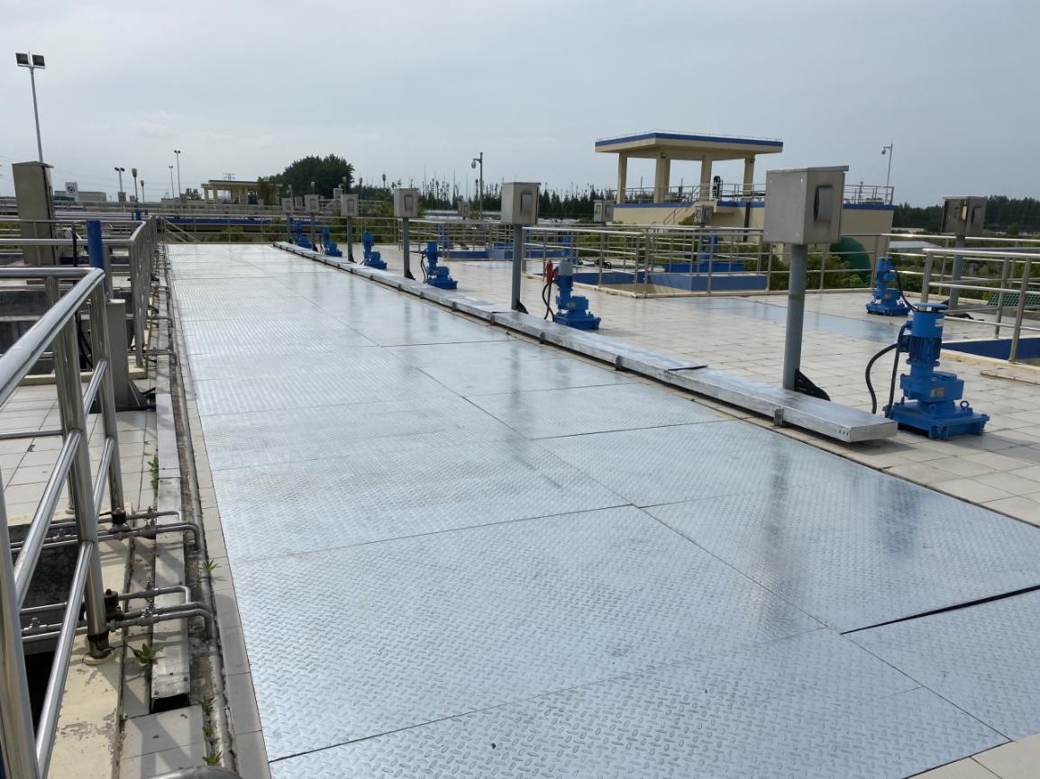 圖:二期沉淀池頂嶄新的不銹鋼蓋板