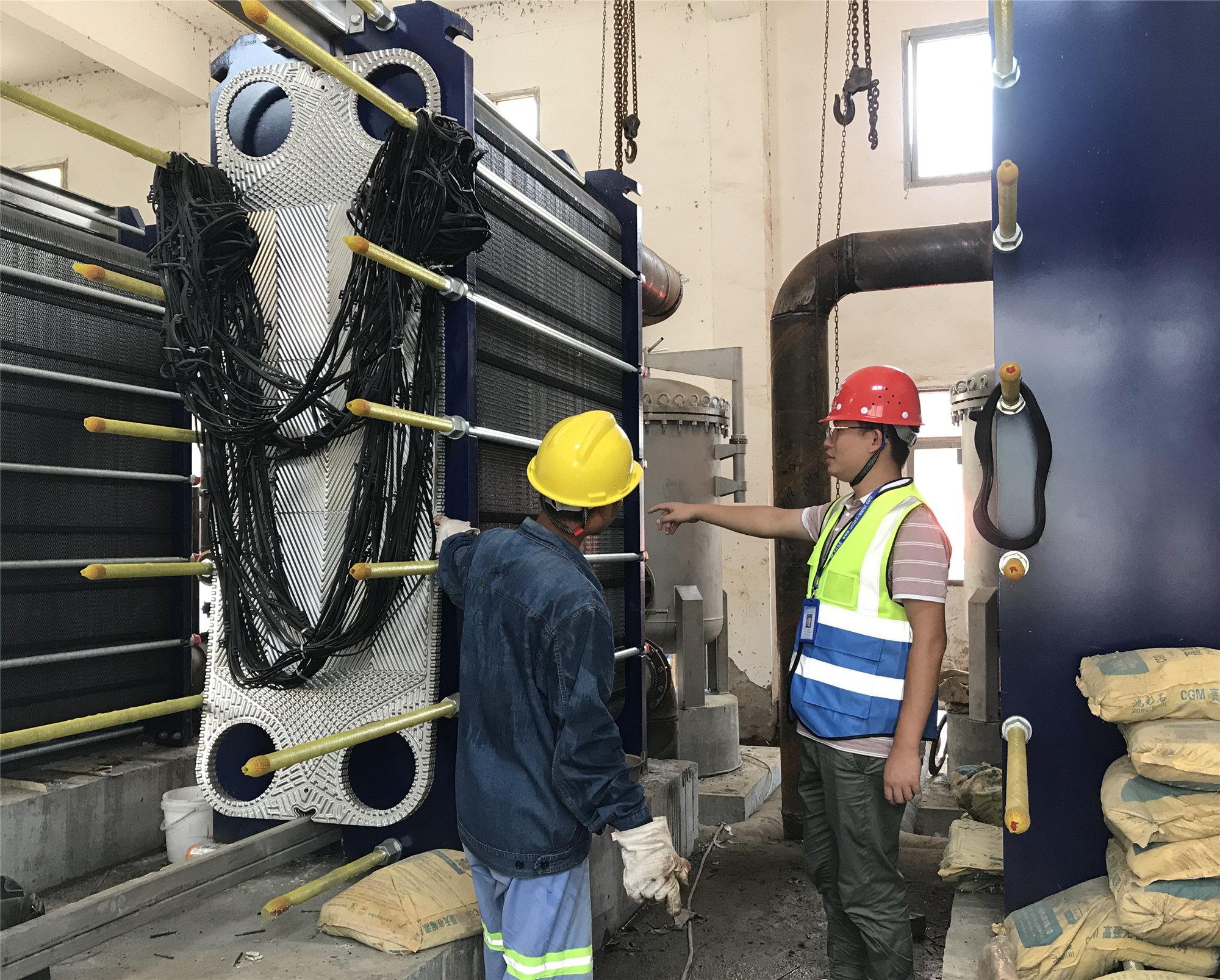 盛夏時節(jié),暑氣熏蒸,烈日杲杲,離開空調(diào),就有酷熱窒息之感。 因印染工藝含煮煉、蒸化等高溫蒸煮環(huán)節(jié)導(dǎo)致進(jìn)入污水管網(wǎng)的印染污水水溫高達(dá)60℃,而印染污水為荊州公司工業(yè)污水的主要污水水源,低溫天氣下,對系統(tǒng)沖擊較小,但在酷暑季節(jié),對污水廠來說無疑是一個極大的挑戰(zhàn)。面對高溫污水處理壓力與挑戰(zhàn),荊州申聯(lián)公司盡銳出戰(zhàn),不忘治污初心,誓奪高溫治污攻堅戰(zhàn)勝利,確保夏季高溫安全生產(chǎn),出水達(dá)標(biāo)排放。 防患未然 積極備戰(zhàn) 為保證高溫天氣下,污水處理系統(tǒng)能安全穩(wěn)定運行,項目部開足馬力,全面加速推進(jìn)工業(yè)污水換熱器降溫改造工程,該工程從5月份開始籌備,目前已完成總工程量的95%,預(yù)計7月底全部完工。該工程完工后,將高溫工業(yè)污水從集水池引入換熱器中通過傳熱板片實現(xiàn)冷熱水的熱量傳遞,預(yù)計可將工業(yè)污水降溫至30℃左右再回流至集水池中,使得進(jìn)入生化段的污水溫度適宜,減小對系統(tǒng)的沖擊。