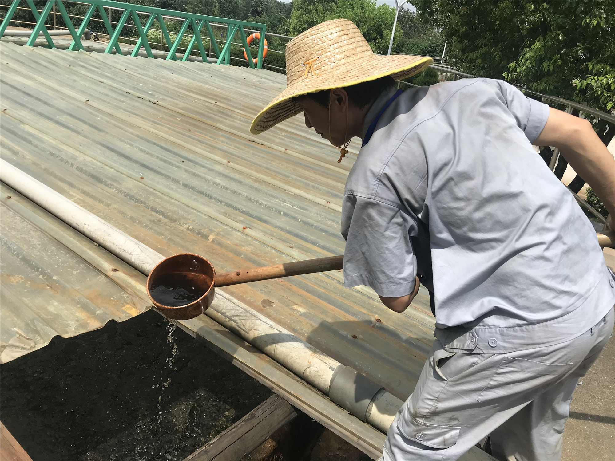 圖:運行工查看污泥濃縮情況 在100余家客戶、稽查水樣及原輔材料檢測等日常化驗事項之外,為保證高溫酷暑下出廠水100%達(dá)標(biāo),化驗室加倍檢測廠區(qū)各工藝段水樣。她們身穿白色的工作服,手持透明的采樣器,頭頂火熱的太陽,腳踩炙熱的土地,穿梭在各個構(gòu)筑物中間抽取水樣。化驗室內(nèi),分光光度計、測油儀、培養(yǎng)箱等檢測儀器在化驗員的操作下無縫銜接,相繼開啟,她們深怕一個不留神忘了一個環(huán)節(jié),延緩數(shù)據(jù)輸出。盡管工作量加倍,小腿站的水腫,她們并未畏葸不前,而是知難而進(jìn),認(rèn)真檢測每一項指標(biāo),仔細(xì)核對每一個檢測數(shù)據(jù),確保100%準(zhǔn)確,為生產(chǎn)安全穩(wěn)定運行保駕護(hù)航。