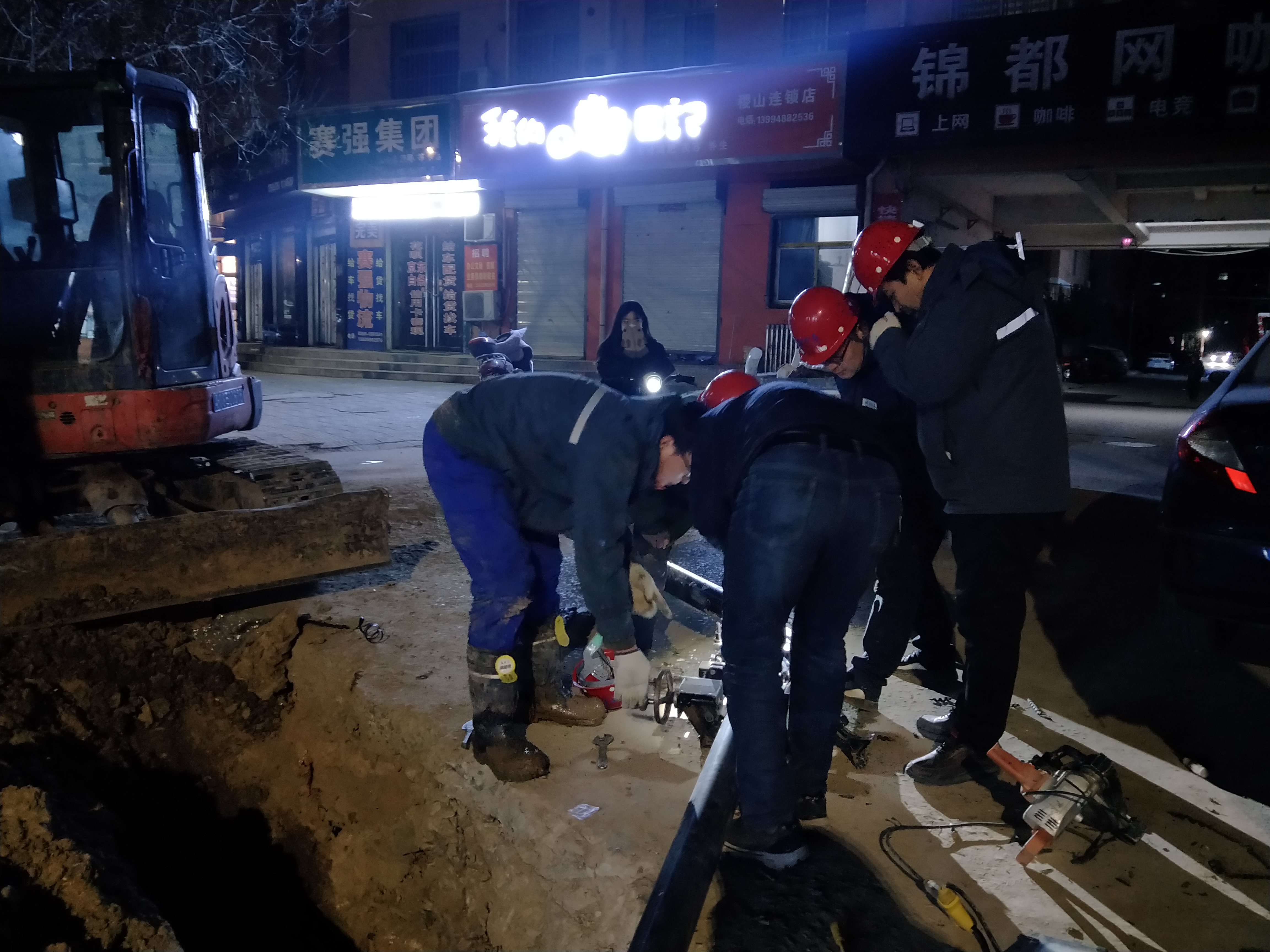 在客服部通知西苑小區用戶提前儲水后,19:30管網部在西苑小區進行人工開挖,20:30西配水廠進行準備工作,21:00準時開工,在零下5℃的低溫天氣下,楊經理帶領維修員親自下井進行流量計拆卸,克服了流量計長度不一的技術性難題,最終西配水廠流量計更換在20日2:20更換完畢,并成功試水,緊接著楊經理帶領人員趕赴西苑小區,指導開挖,成功的修復了西苑小區漏水管道,最終在20日4:30提前完成了此兩項工作。