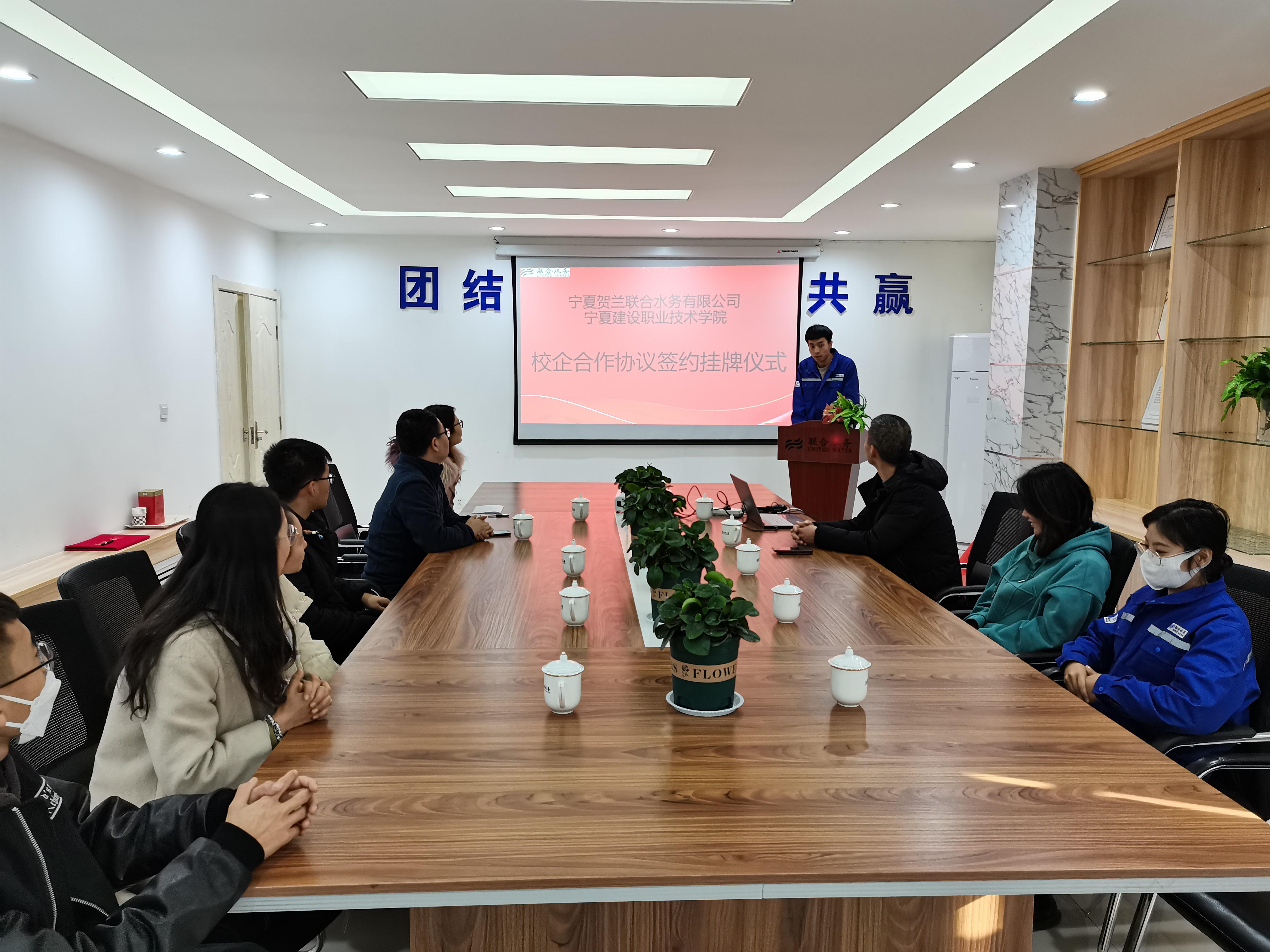 12月23日下午,寧夏賀蘭聯(lián)合水務(wù)有限公司與寧夏建設(shè)職業(yè)技術(shù)學院“校企人才戰(zhàn)略合作簽約儀式暨實訓掛牌儀式”在寧夏賀蘭聯(lián)合水務(wù)公司順利舉辦。