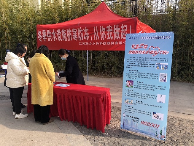 寒冬將至,氣溫日漸降低,為確保滿足廣大居民用戶在寒潮狀態下正常用水需求,江蘇聯合水務科技股份有限公司宿遷供水公司客服部開展了防寒宣傳進小區活動。走出公司,進入小區,近距離接觸和了解居民住戶的用水需求,并對各個物業和小區居民進行了多方位的防凍措施普及和知識講解。