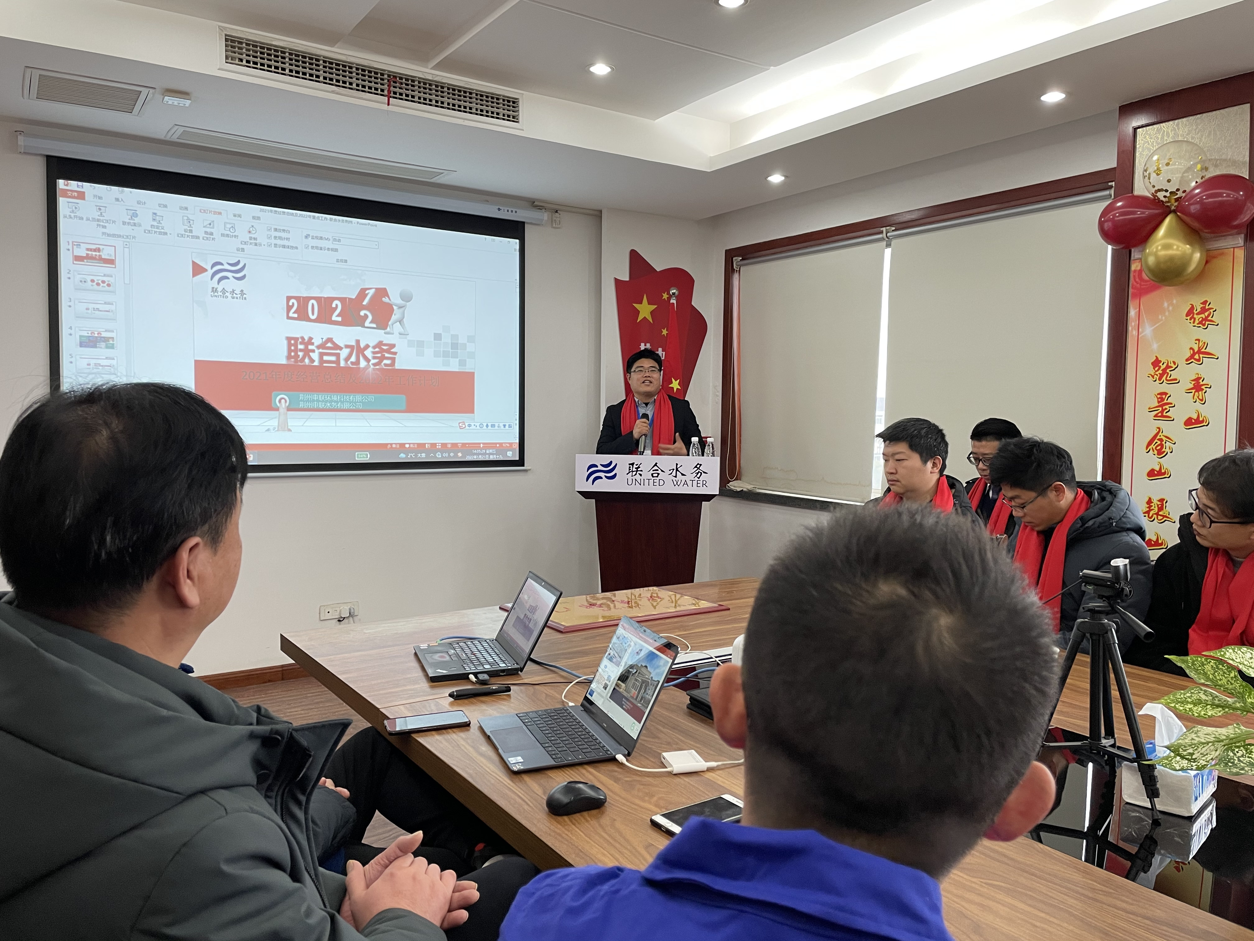 為全面回顧2021年主要工作,分析不足、總結(jié)經(jīng)驗(yàn),提升短板、增強(qiáng)弱項(xiàng),把舵定調(diào)2022年工作,以及表彰先進(jìn)部門和員工。1月21日,荊州申聯(lián)公司召開以“負(fù)新任,再跨越”為主題的2021年工作總結(jié)暨表彰大會。江蘇聯(lián)合水務(wù)科技股份有限公司常務(wù)副總裁劉猛以及荊州申聯(lián)公司主管級以上人員、先進(jìn)員工、員工代表共計(jì)30余人參加了會議,會議由總經(jīng)理助理吳帆主持。
