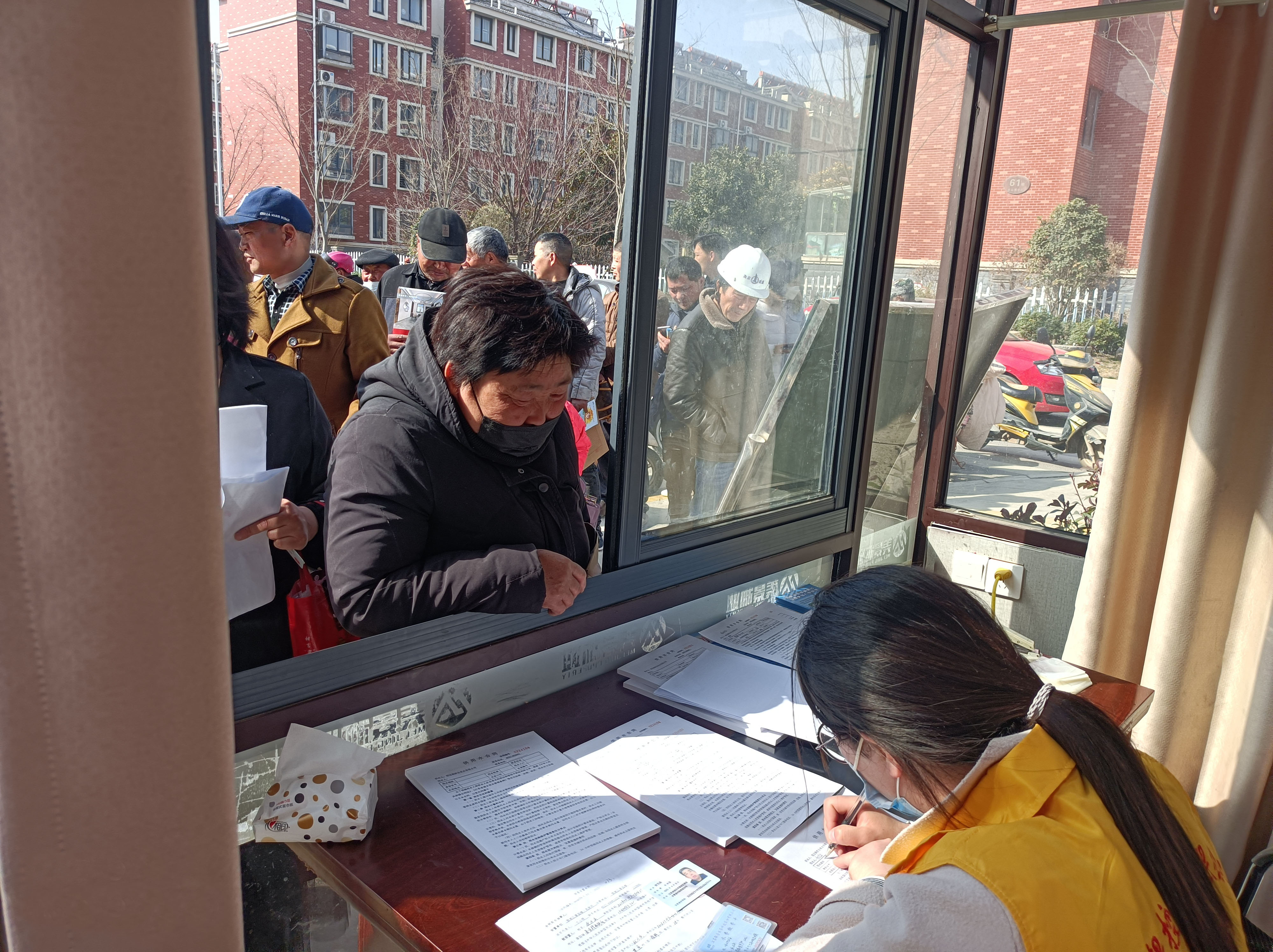圖:工作人員為居民集中辦理用水開戶現(xiàn)場