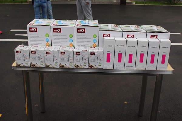 (圖1:活動獎品) “夾花生豆”趣味游戲要求兩人為一組,左手用筷子將花生豆夾至終點。經過激烈角逐,寧杰瓊、李國璋組力壓群雄,以4分58拔得頭魁!