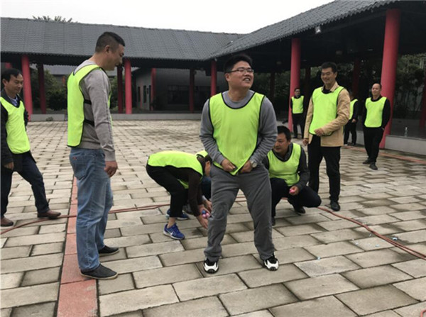 為擴展員工業余生活,增強團隊凝聚力,提升團隊整體協作能力,豐富企業文化內涵,聯合水務荊州申聯公司分別于10月17日和25日兩天,在千頌文化園開展以“員工動起來,企業更精彩”為主題的團建拓展活動。 在千頌文化園門前合影留戀后,活動拉開序幕。對方隊員在確定隊名、隊歌及隊形后,通過互動小游戲活躍氣氛,形成熱鬧的團隊氛圍。
